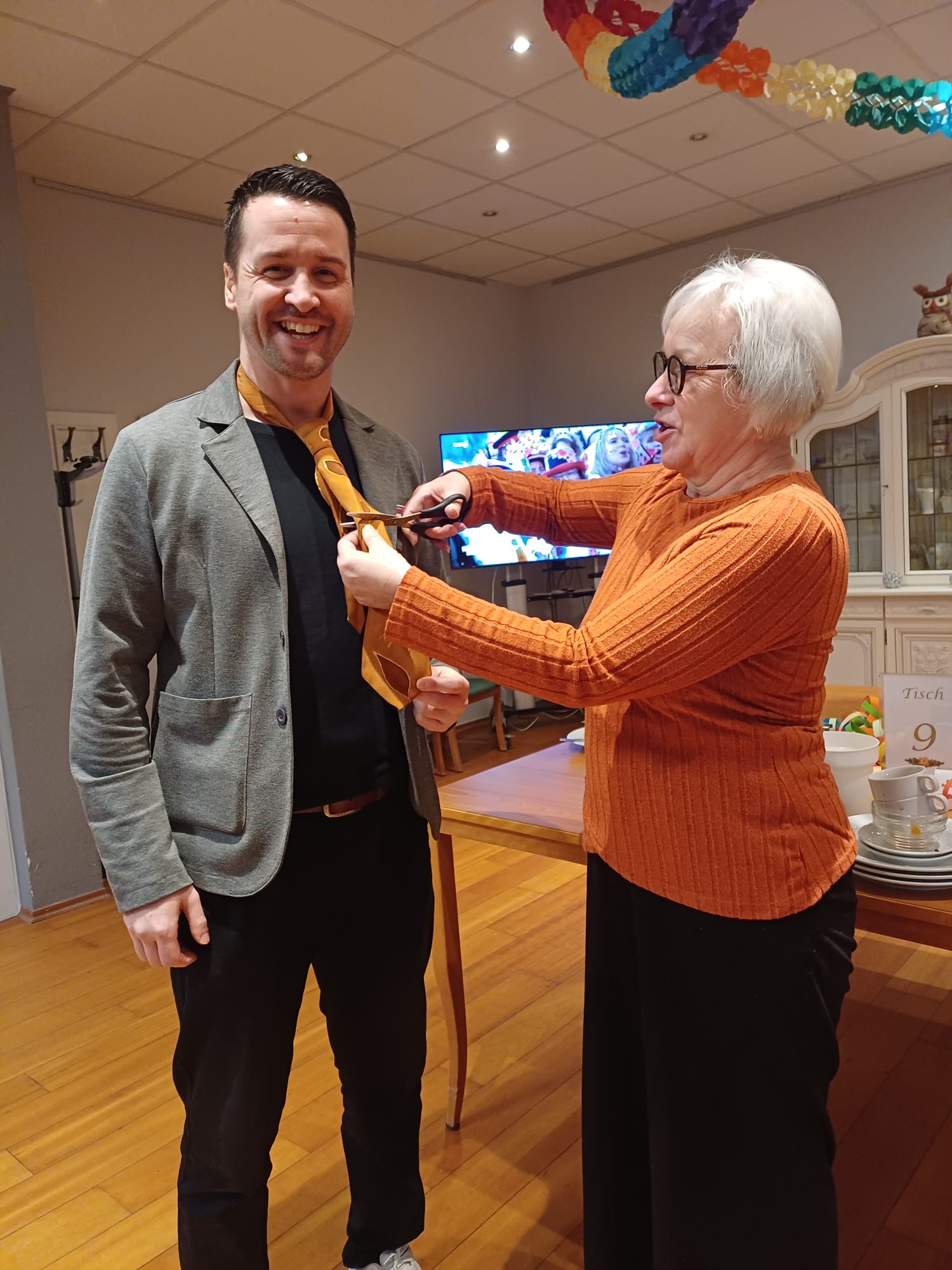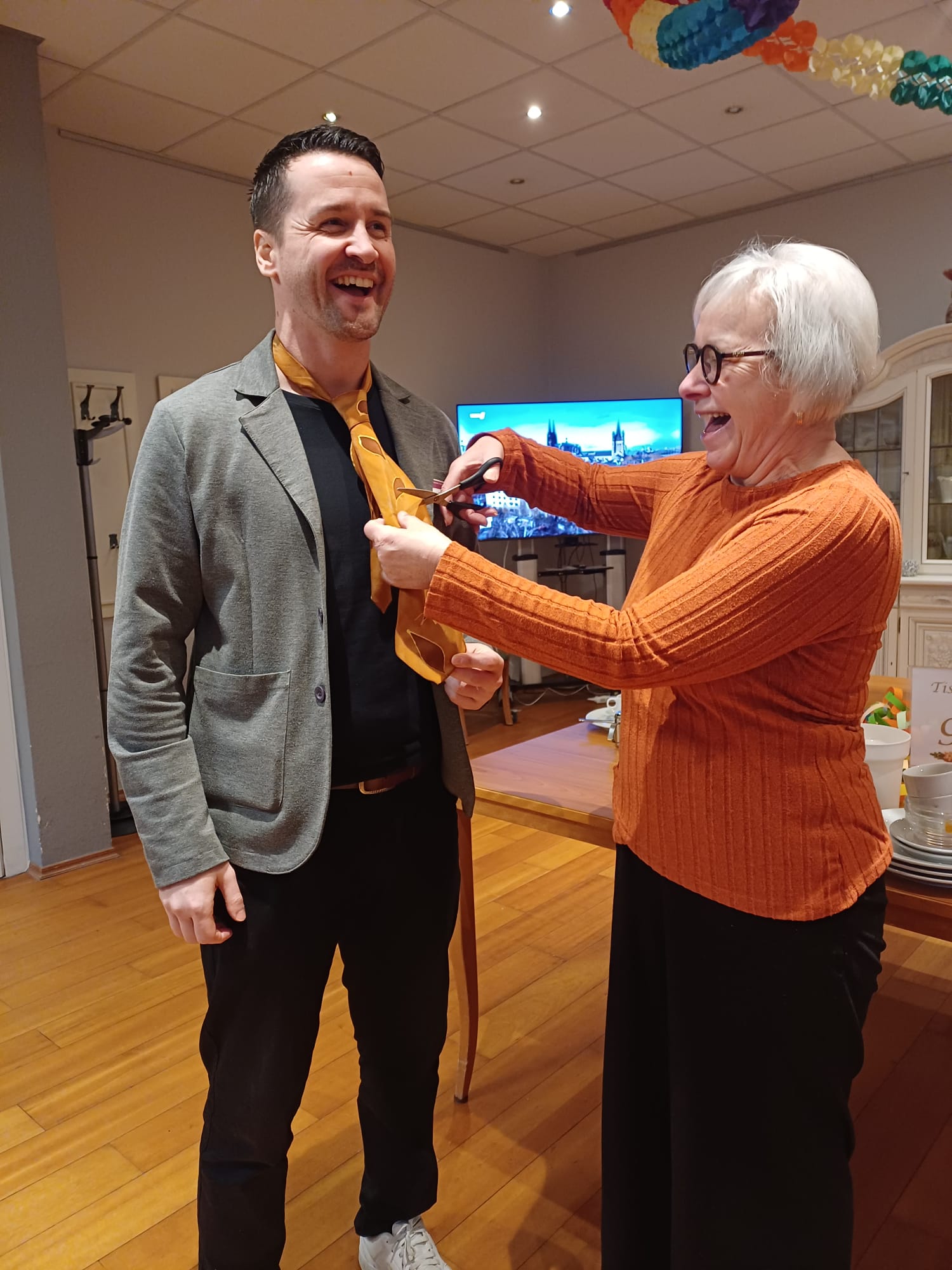 Startseite Faschingszeit Faschingszeit 24.02.2026 bis 24.04.2026 Närrisch wurde der Weiberfasching in unserem SenVital gefeiert. Residenzleiter Christian Otto wurde von Gast Bärbel Richter direkt am frühen Morgen abgefangen und „schnippschnapp“ wurde seine Krawatte angepasst.
